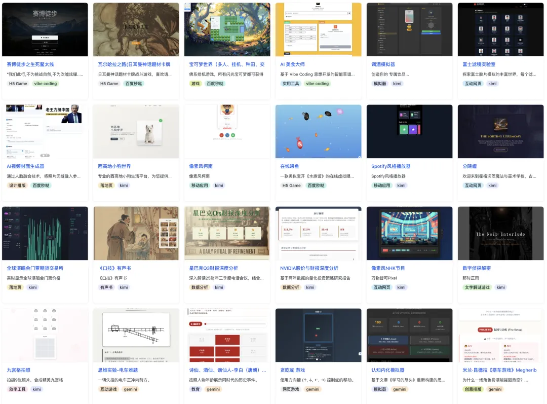 Vibe Coding 通过对话式 AI 辅助,让开发者可以专注于创意和设计,而非繁琐的代码实现。其中以模拟器类、文字跑团、网页小游戏为主。