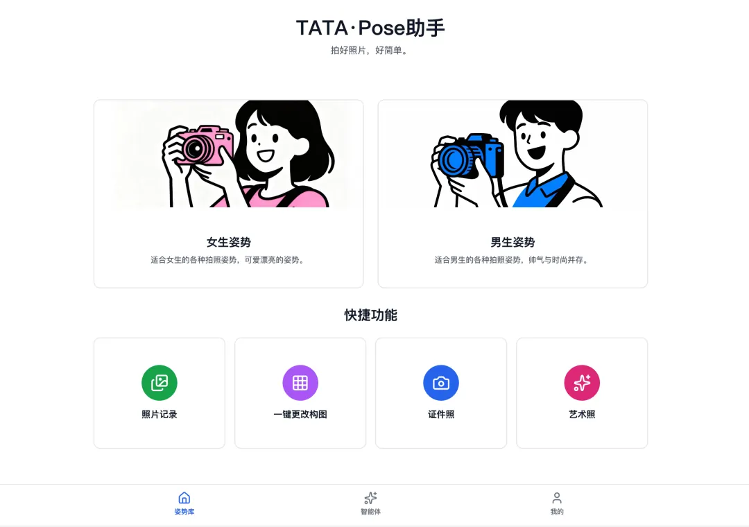 通过人脸融合技术,将照片无缝融入参考封面,快速生成适配多平台的专业视频封面。https://app-7tiqbokgisch.appmiaoda.com/TATA·Pose助手