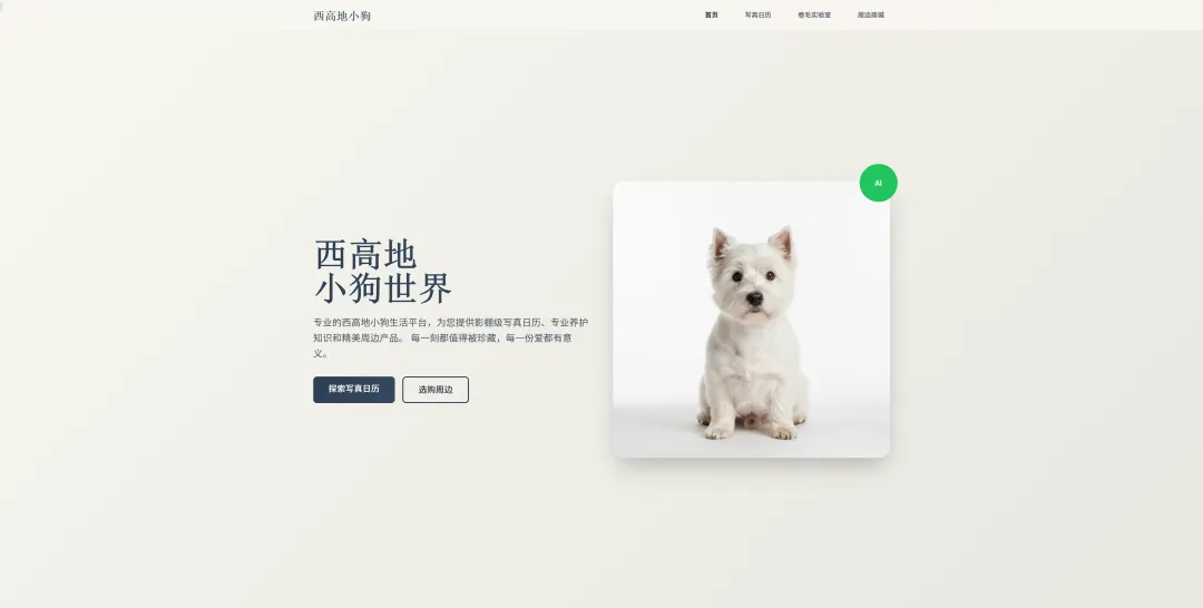 专业的西高地小狗生活平台,包含影棚级写真日历、专业养护知识和精美周边产品商城模块。https://e2s3taggsayse.ok.kimi.link/市场洞察助手