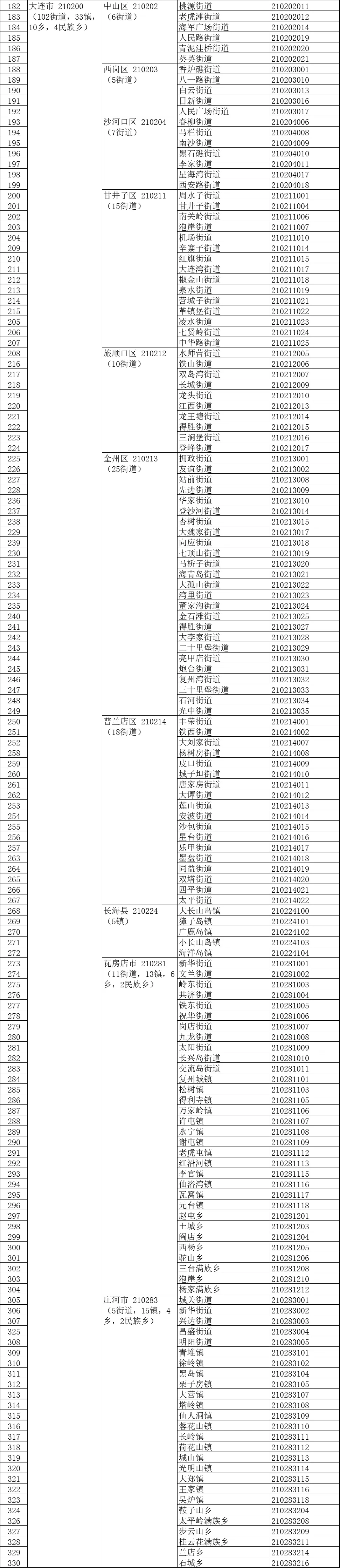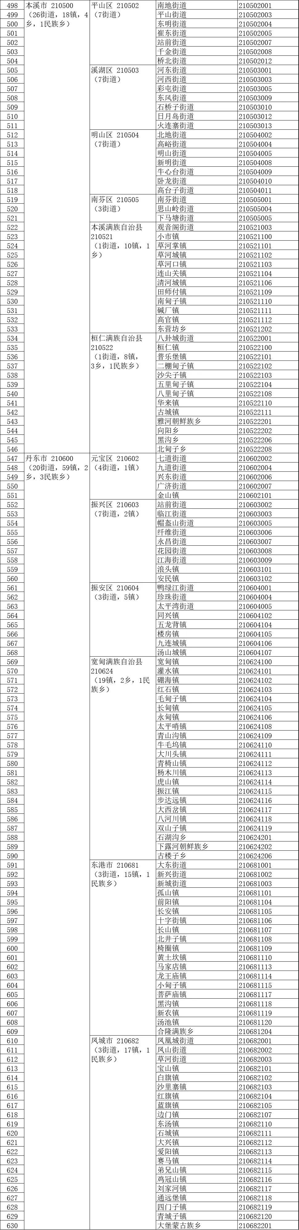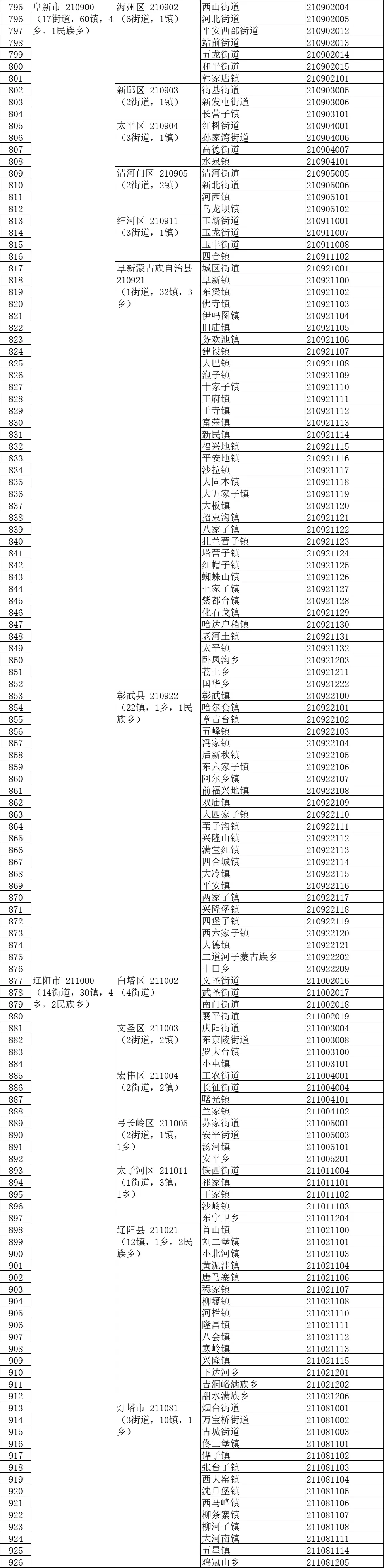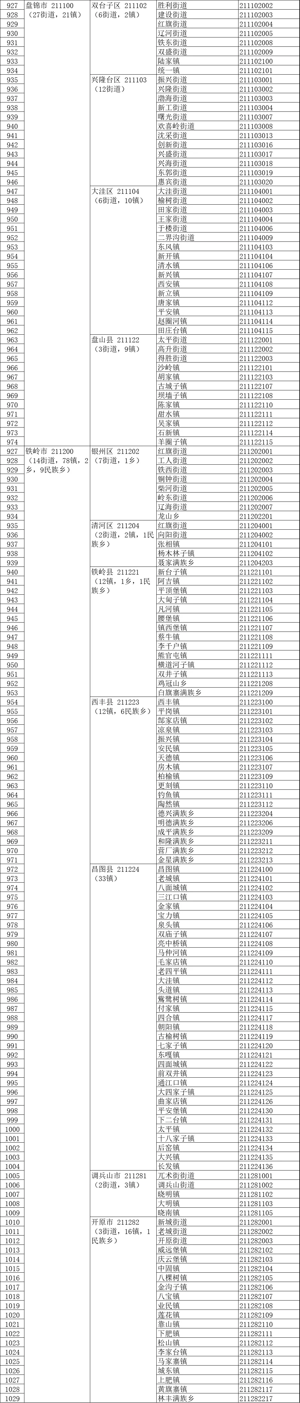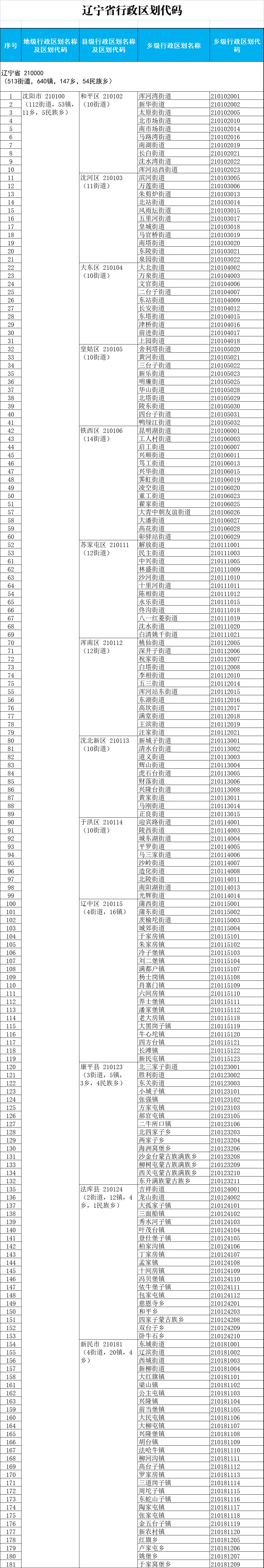 2026年1月27日,辽宁省民政厅公布《2025年度辽宁省行政区划代码公告》:截至2025年12月31日,辽宁省有设区的市14个。县级行政区划100个,其中县17个、自治县8个、不设区的市16个、市辖区59个。乡级区划1354个,其中,乡147个,民族乡54个,镇640个,街道513个。现对全省行政区划代码予以公布。