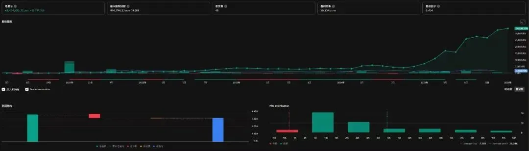 我的策略回测数据盈亏比6.4:1 胜率56%,亏损占比只有7.58%并且是回测6年的数据。
