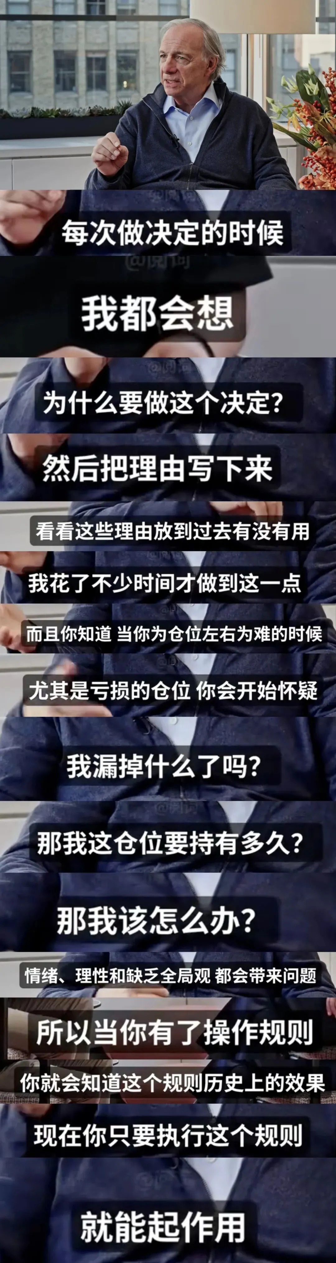 大概就是《交易原则+历史数据=机械执行》,就这么简单,事到如今他还在反复提这个原则,这个视频采访就在上个月,25年12月。