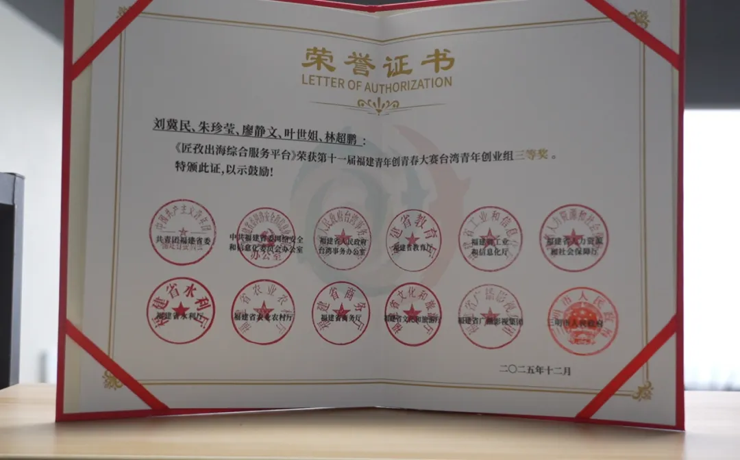 创业两年间,刘冀民的公司已获得多项认可:福州市海峡青年职工杯三等奖、白鹭之星两岸融合创新奖,以及最具代表性的福建省创青春大赛三等奖。