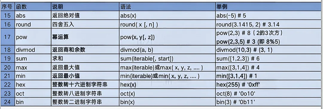 内置函数就是Python提供的可以直接拿来使用的函数。