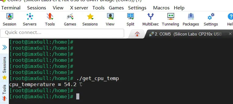 #include<stdio.h> #include<unistd.h>#include<stdlib.h>#include<string.h>#include<errno.h>#define CPU_TEMP_FILE0 "/sys/devices/virtual/thermal/thermal_zone0/temp"structcpu_temperature{int integer_part;int decimal_part;};typedefstructcpu_temperaturecpu_temperature_t;cpu_temperature_tget_cpu_temperature(constchar *_cpu_temp_file){ FILE *fp = NULL;cpu_temperature_t cpu_temperature = {0};int temp = 0; fp = fopen(_cpu_temp_file, "r");if (NULL == fp) {printf("fopen file error\n");return cpu_temperature; }fscanf(fp, "%d", &temp); cpu_temperature.integer_part = temp / 1000; cpu_temperature.decimal_part = temp % 1000 / 100; fclose(fp);return cpu_temperature;}intmain(int arc, char *argv[]){cpu_temperature_t cpu_temperature = {0}; cpu_temperature = get_cpu_temperature(CPU_TEMP_FILE0);printf("cpu_temperature = %d.%d ℃\n", cpu_temperature.integer_part, cpu_temperature.decimal_part);return0;}运行结果: