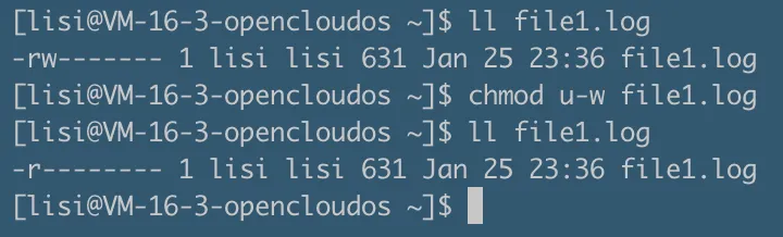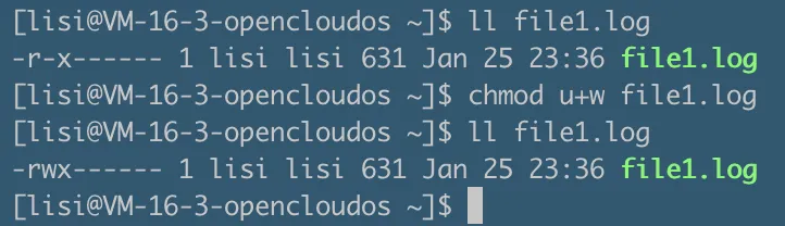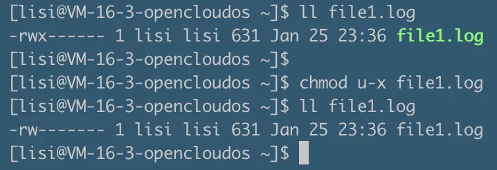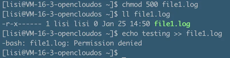 具体示例:修改 file1.log 权限,仅归属人有读和执行权限