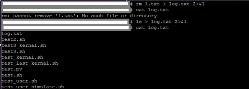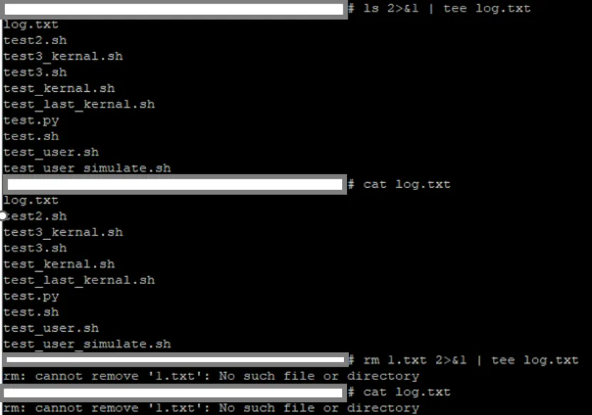 以下命令使用 command 2>&1 | tee log.txt 则无论是错误输出还是标准输出,都在前台以及 log.txt 中显示