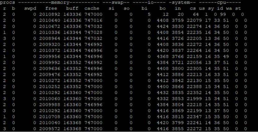 同时运行排序算法的python脚本以及vmstat检查us或者sy的数值是否会变化