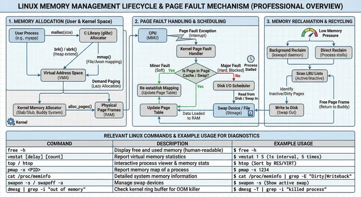 | file-rss 被映射到物理内存中的文件内容,如程序代码、共享库。 | 较低。这部分内存在紧张时可以被回收(丢弃后能从文件重新读取),因此对OOM的压力较小。 | 那些还未拆封的“预制菜”或“罐头”,在厨房空间不足时可以先挪出去。 |