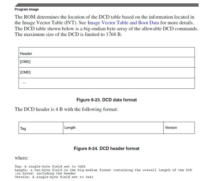 Length:两个字节,大端格式,包含整个DCD的长度(包括Header)。