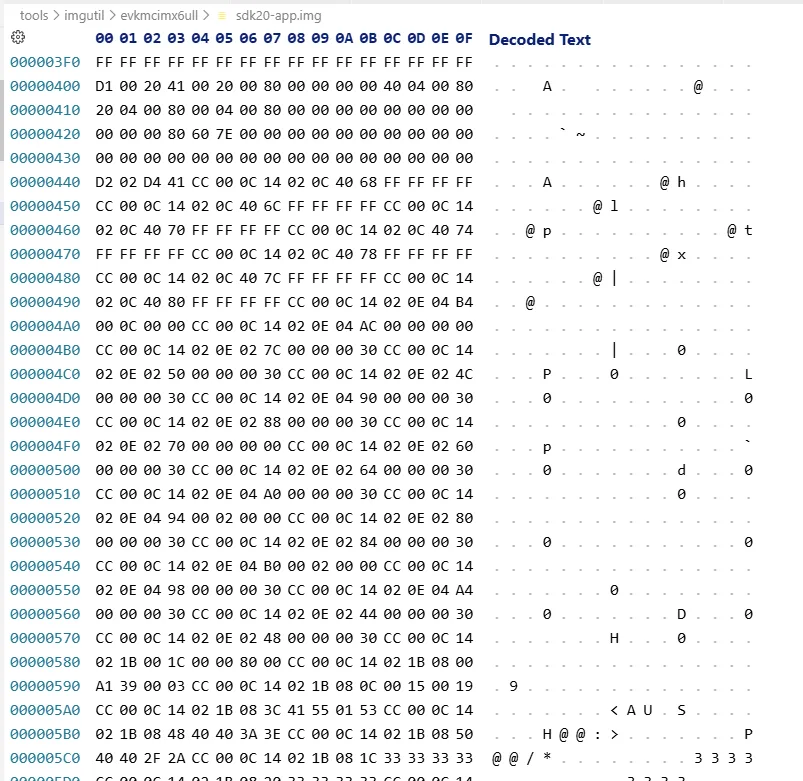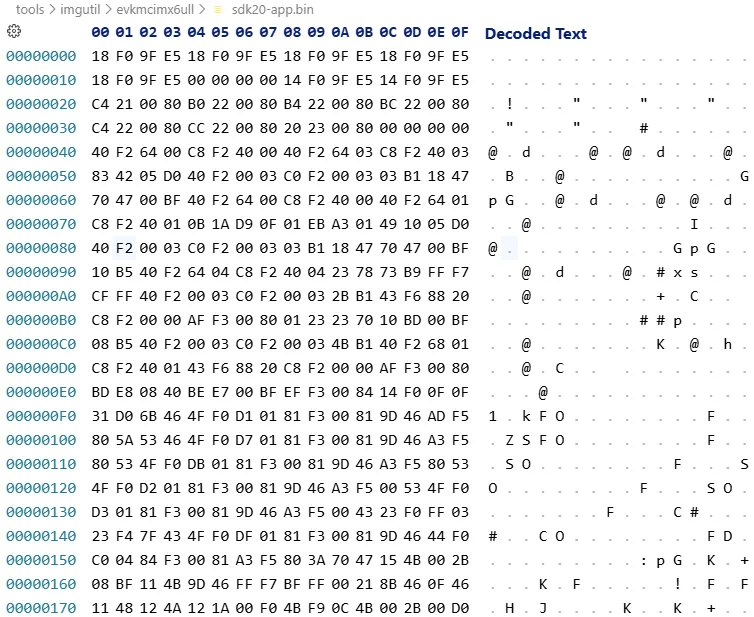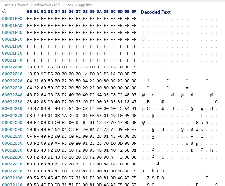 以16进制形式,打开文件sdk20-app.bin和sdk20-app.img