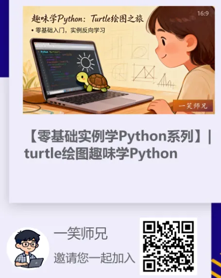 上一篇文章,讲了为什么写这个《零基础实战学Python|turtle趣味绘图系列》,别学理论了,一笑师兄带你用 turtle 趣味入门 Python