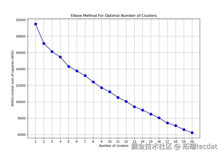 簇数设置为1-20时,通过WSS图(组内平方和)观察簇数适配性,拐点虽不明显,但簇数为2、3、5、9时WSS下降趋势变缓,簇数适中。