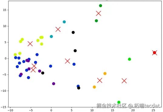 当簇数设为9时,各簇样本轮廓系数表现较好,通过PCA降维可视化聚类结果如下: