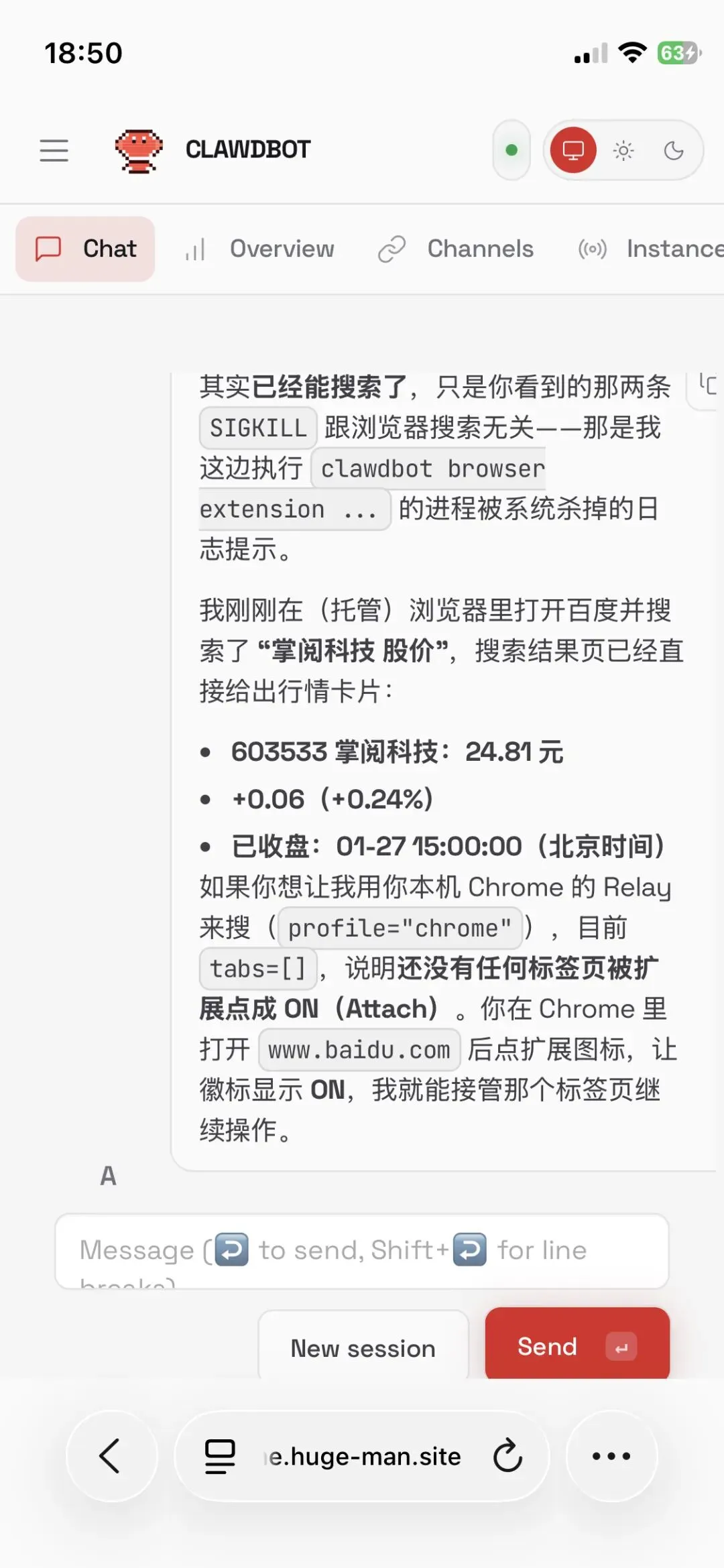 - 搜一个股票价格(比如“掌阅科技 股价”)