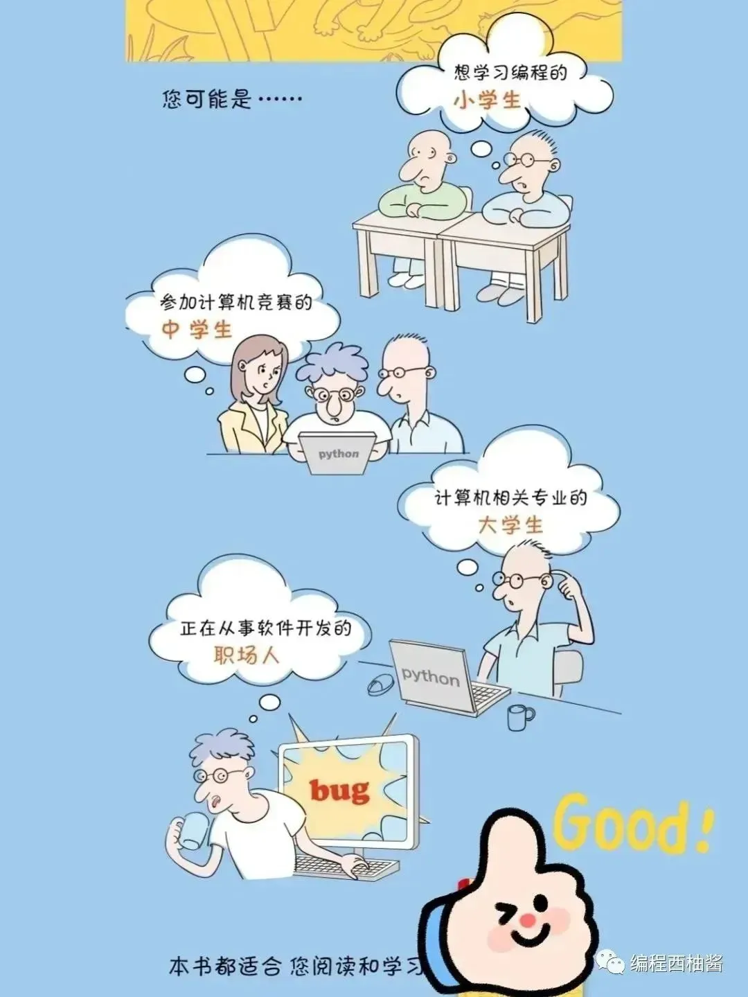 《看漫画学编程》(共两季)用有趣、有料、好玩、好用的理念,通过三个漫画人物的轻松对话、搞笑形象以及夸张的动作,把复杂的python技术问题简单化。