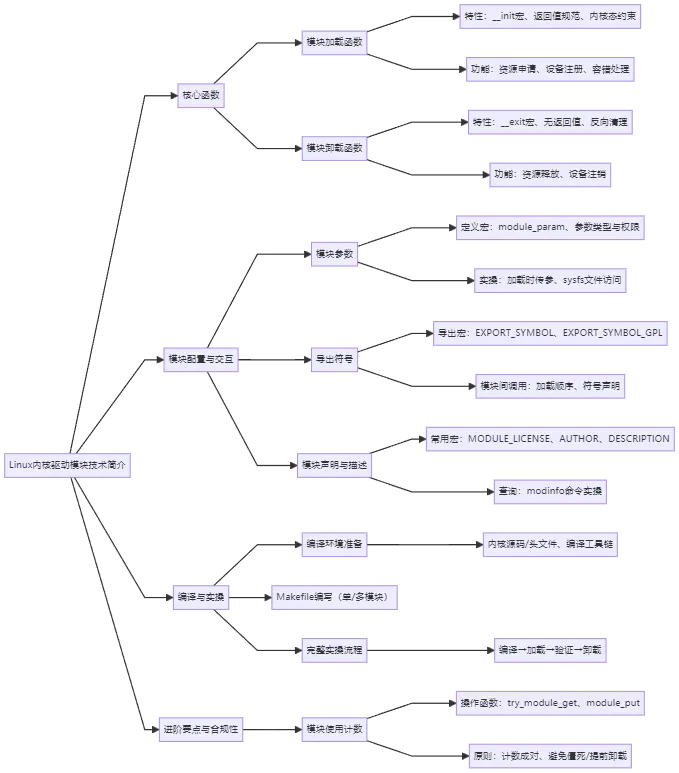 Linux内核驱动模块是连接硬件与内核、扩展内核功能的核心技术,其核心价值在于动态加载/卸载机制与高效的内核资源管理。本文从模块基础结构、核心函数、参数配置、编译实操,到符号导出、使用计数、GPL协议合规性,系统梳理了模块开发的关键知识点与实操要点。