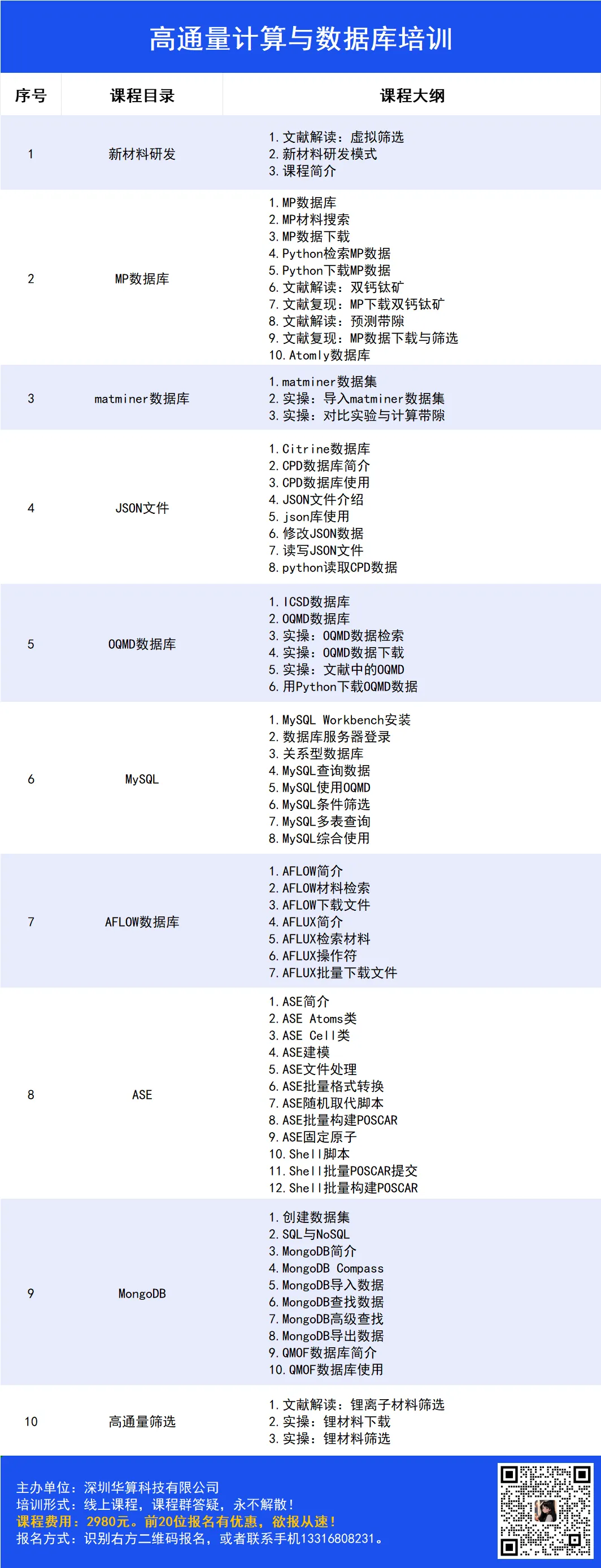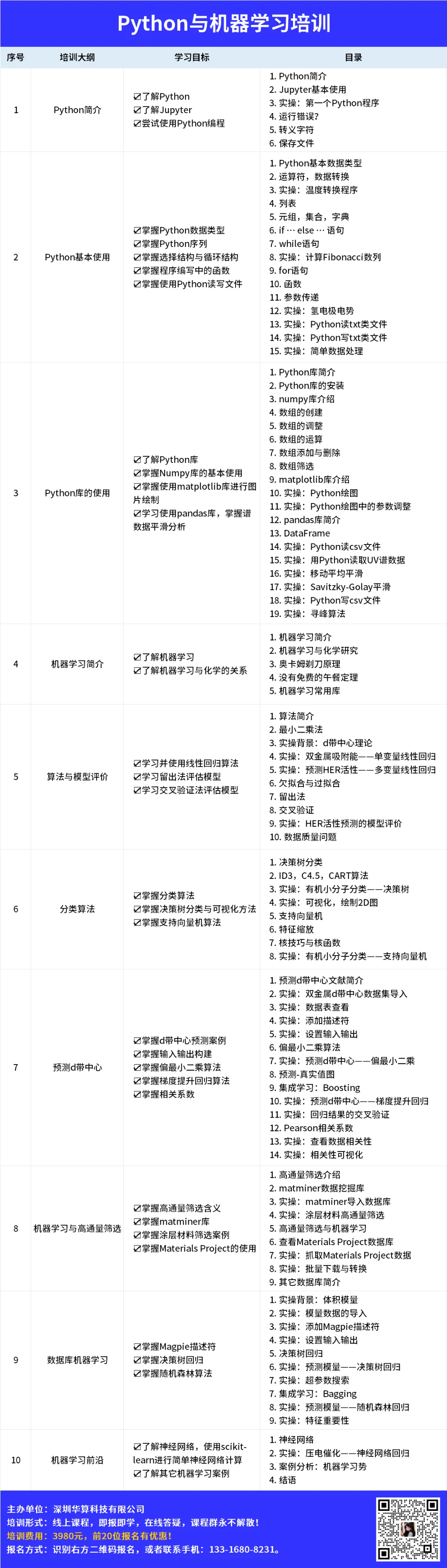 报名方式:5个课程同时报名可享额外优惠!识别下方二维码报名,或者联系手机:133-1680-8231。