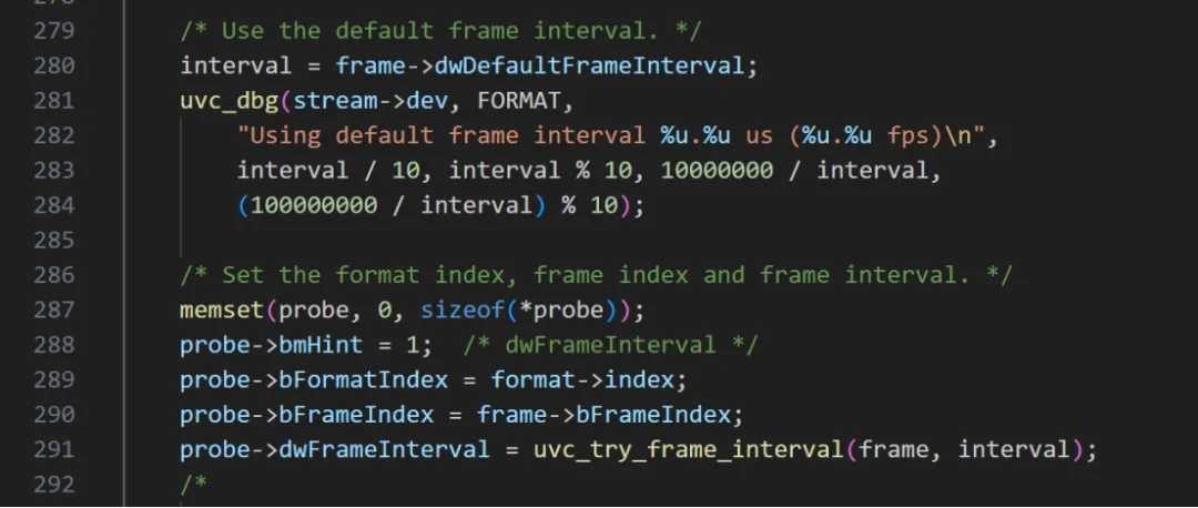 uvc_dbg(stream->dev, FORMAT,"format %d frame %d\r\n", probe->bFormatIndex,probe->bFrameIndex);