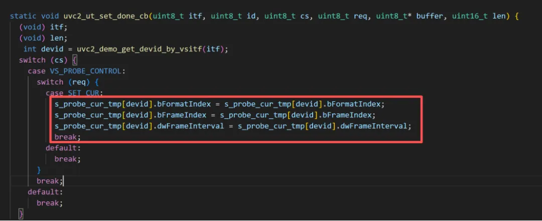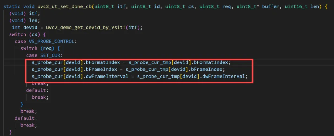 /* Probe the device. */ ret = uvc_probe_video(stream, probe); mutex_unlock(&stream->mutex); if (ret < 0){ uvc_dbg(stream->dev, FORMAT,"uvc_probe_video err ret %d\r\n", ret); return ret; }