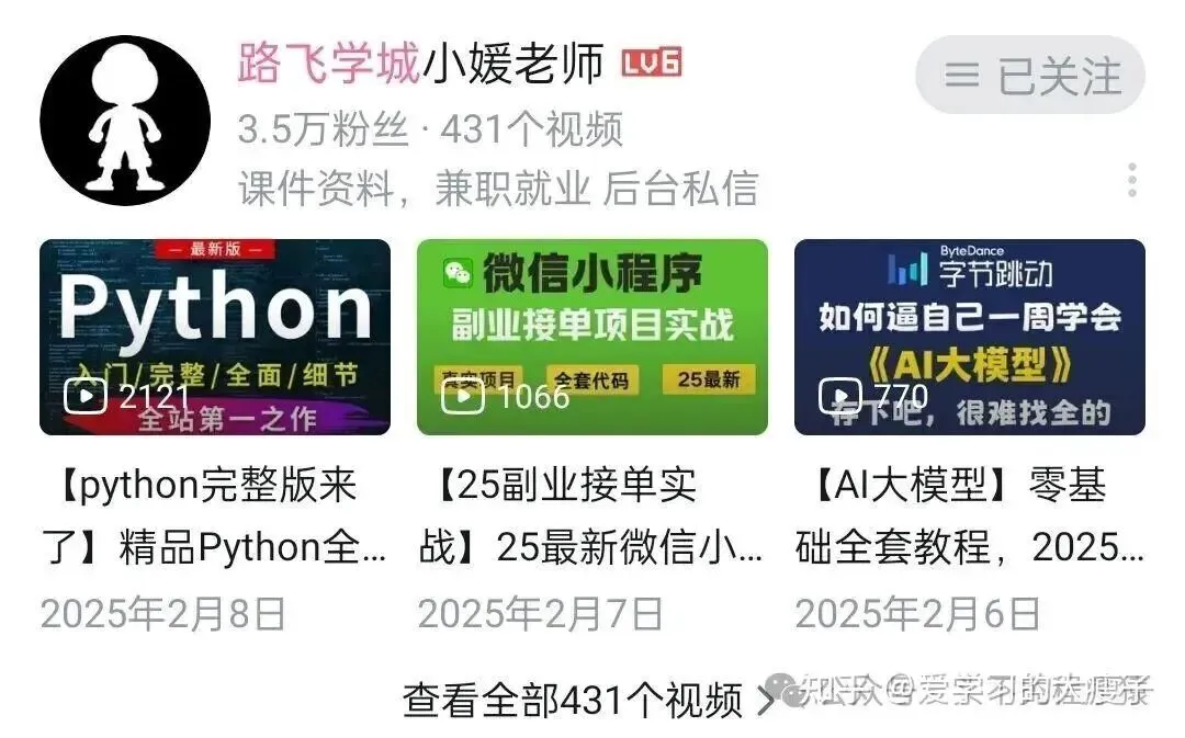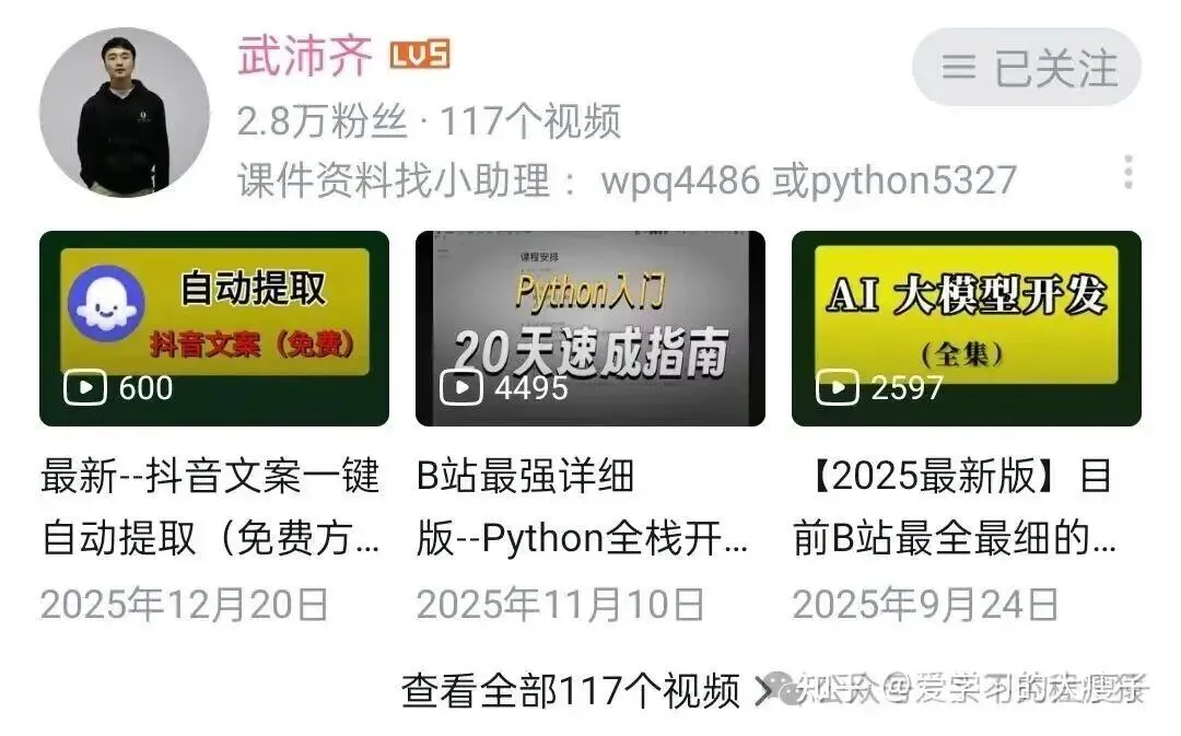 后端开发宝藏讲师,讲课细致入微,对 Flask、Django 框架的讲解深入浅出,从底层原理到项目实战,配套完整的电商、博客等实战项目,学完能独立开发后端接口,知识点全面,适合想做 Python 后端的同学。
