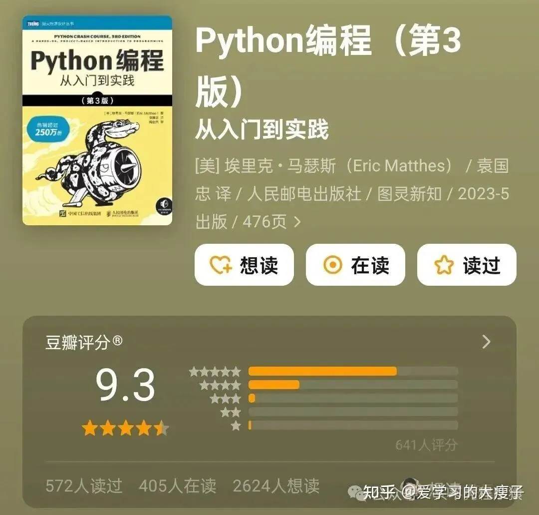 《Python 编程:从入门到实践》 豆瓣评分 9.3 分