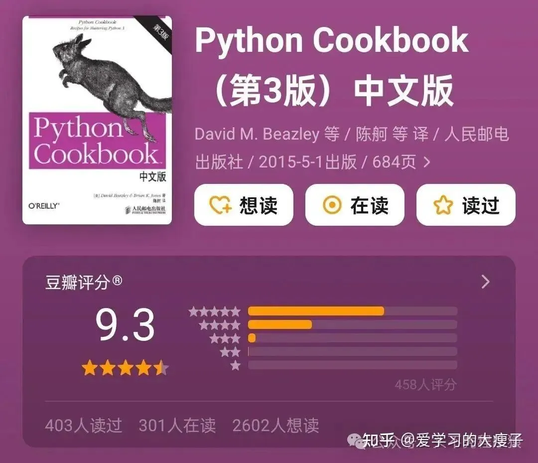 《Python Cookbook》豆瓣评分 9.3 分
