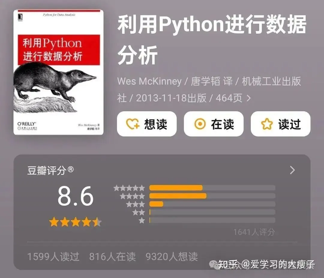 《利用 Python 进行数据分析》豆瓣评分 8.6 分