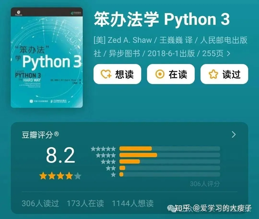 《笨办法学 Python》 豆瓣评分 8.2 分