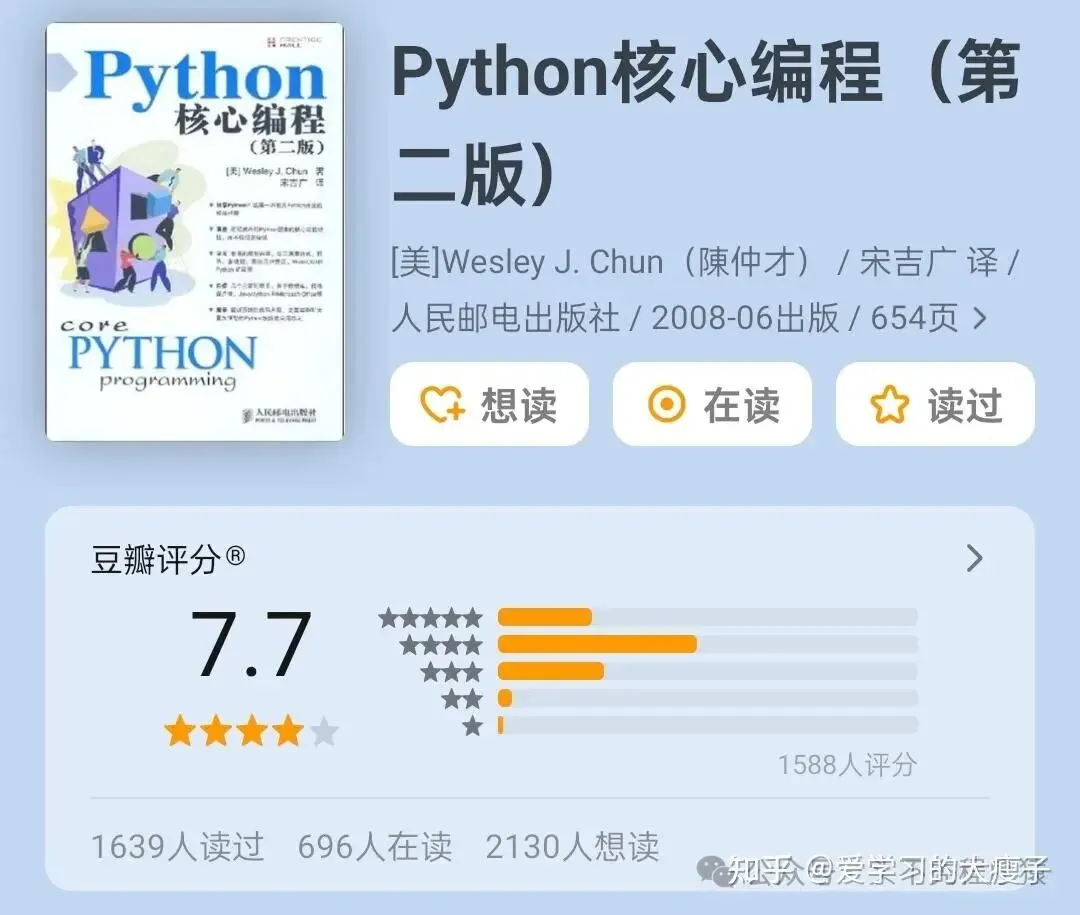 《Python 核心编程》 豆瓣评分 7.7 分