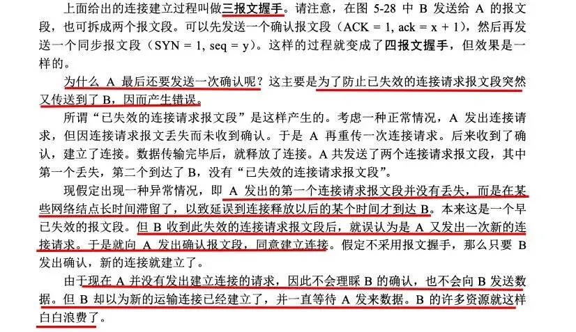 《计算机网络》在讲解 TCP 建立连接时,这样描述第三次 ACK 的作用:"这主要是为了防止已失效的连接请求报文段突然又传送到了服务端,因而产生错误。"
