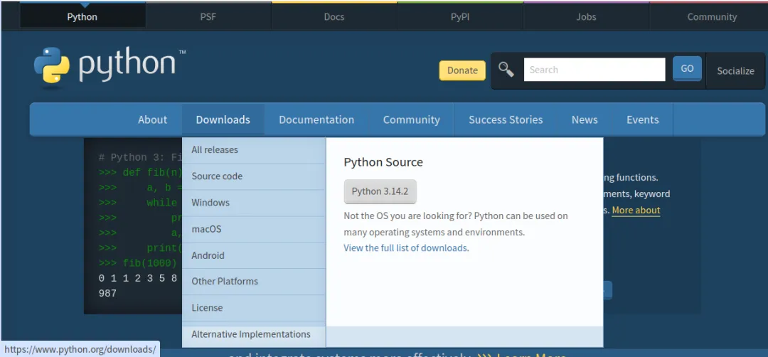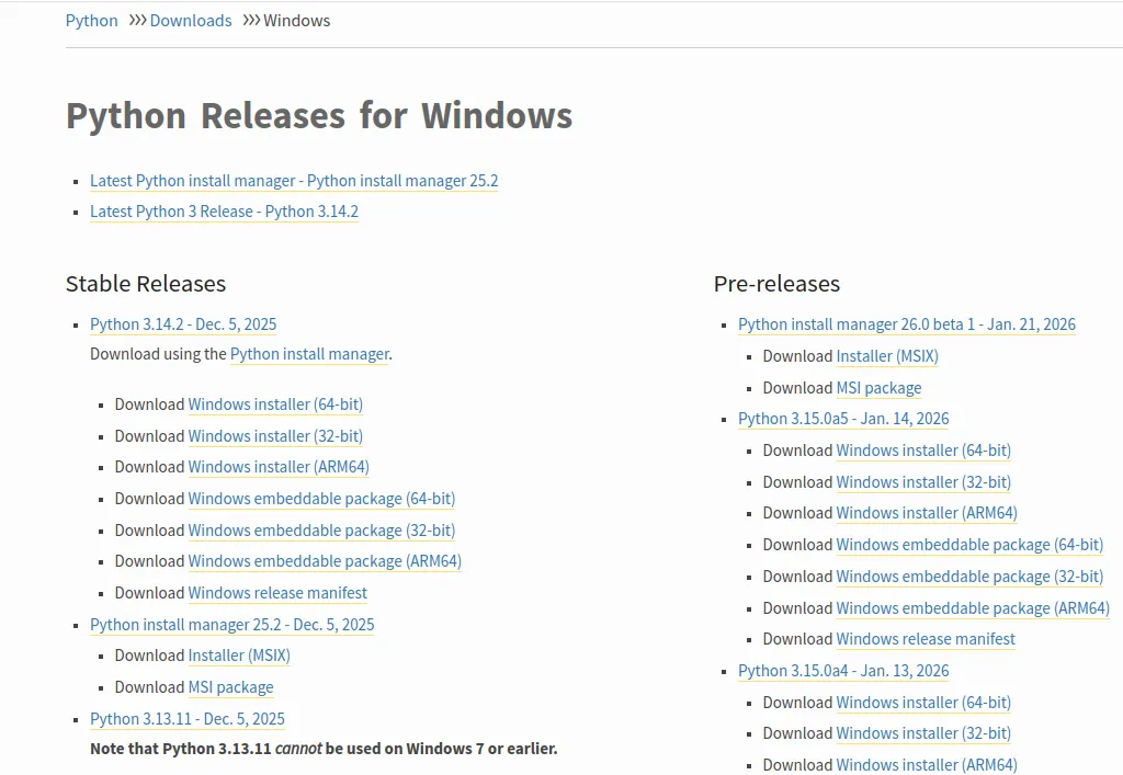 推荐下载最新稳定版本(当前为Python 3.14.2):