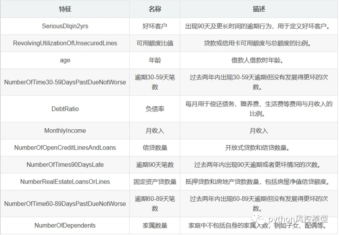 《python信用评分卡建模(附代码)》中give me some credit数据集一览。