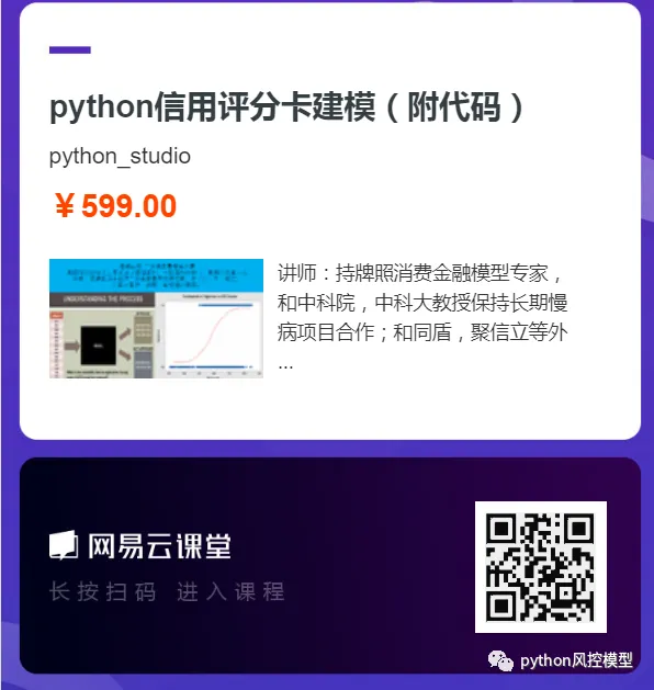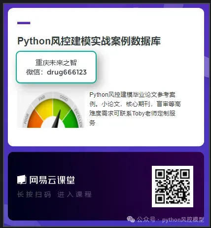如果你对《python风控建模实战案例数据库》数据库感兴趣,微信二维码扫一扫即可访问和收藏,了解更多相关介绍。