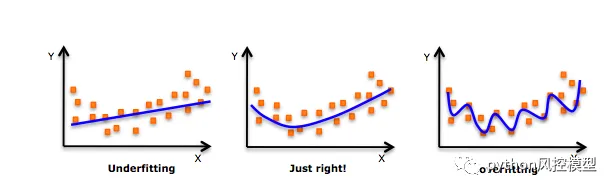 我们建立模型后一般会遇到下面三种情况,underfitting欠拟合,just right拟合合适,overfitting过度拟合。
