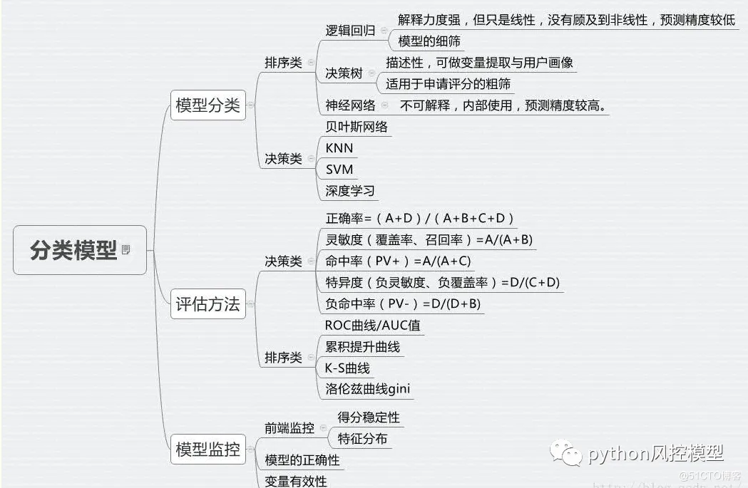 下图是建立分类器模型的常见算法,模型验证方法和模型监控内容结构化展示