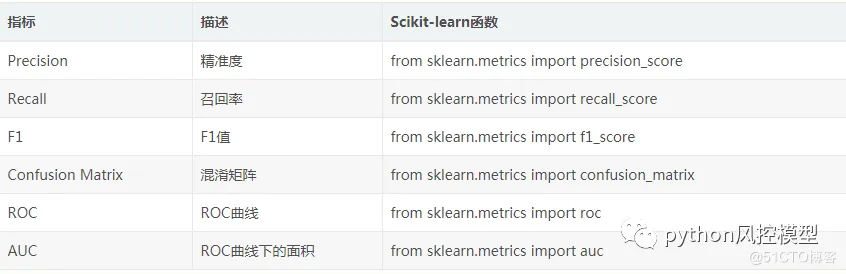 模型验证指标涉及到脚本主要来自sklearn的metrics,具体指标如下: