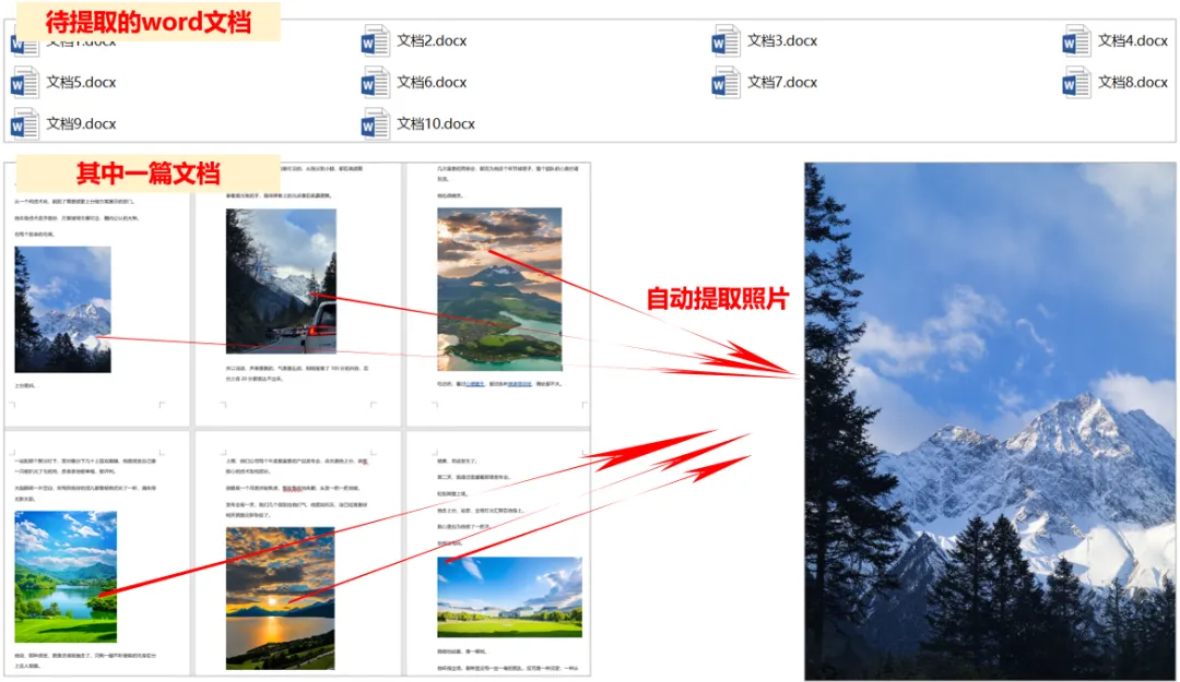 📁 待提取图片文档/ → 📁 已提取图片/├── 第1份文档.docx ├── 第1份文档_已完成提取.docx├── 第2份文档.docx ├── 图片_001/002/003...└── 第3份文档.docx └── 第2份文档_已完成提取.docx└── .......docx └── 图片_001/002/003...将所有需要摘取图片的 Word 文档放入同一个文件夹,程序可自动处理大量文件