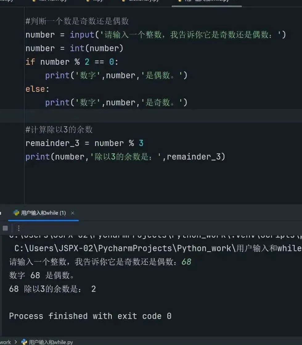 求摸运算符(%):两数相除时只指出余数是多少。可以利用这一点来判断一个数是奇数还是偶数
