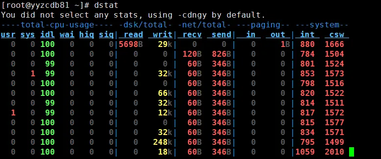 [root@yyzcdb81 ~]# cat /var/log/dstat.csv