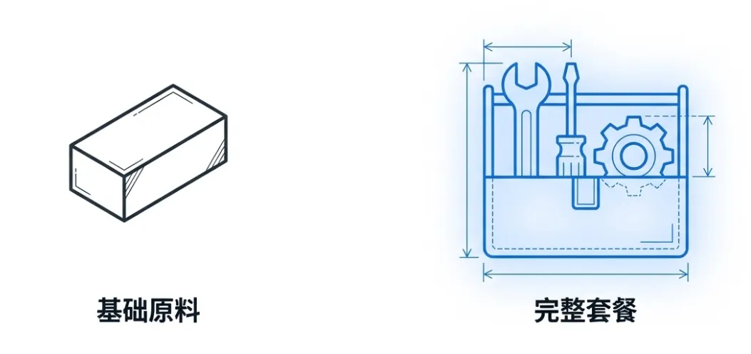 可以把它们理解为“完整套餐”和“基础原料”的关系。