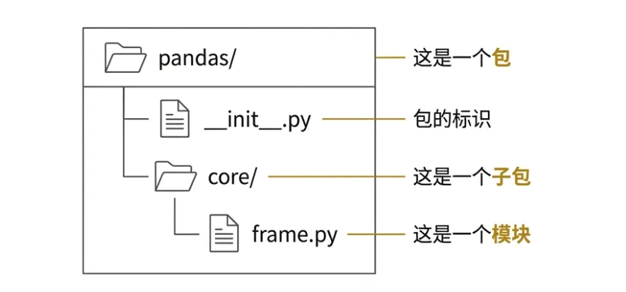 pandas 是一个包,它里面包含了 pandas.core, pandas.io 等子包,以及 pandas.DataFrame 这样的模块和类。