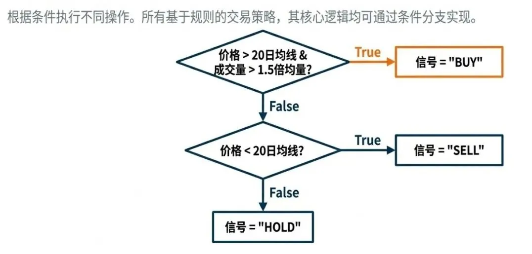 - 关键点:所有基于规则的交易策略,其核心逻辑均可通过条件分支实现。