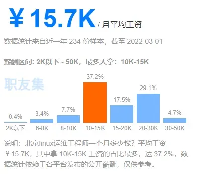 据统计,2021年,Linux相关岗位增长达到了惊人的24%,未来3-5年,Linux技术人才缺口高达130万,并且,其薪资水平也很可观。