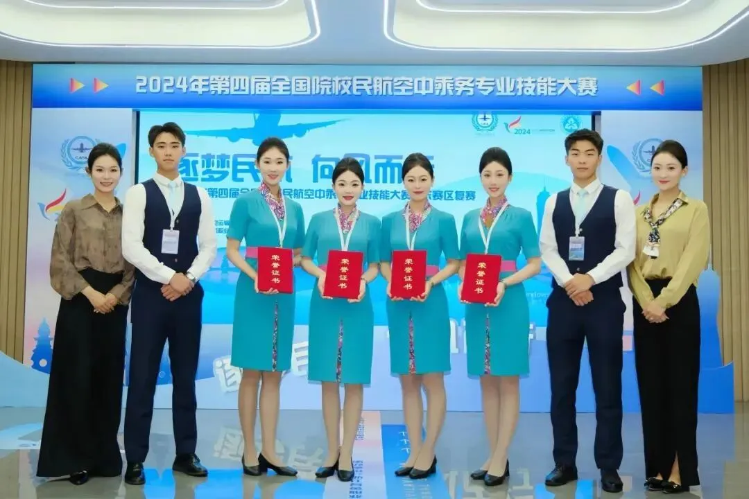 学院实施“三原色”职教理念,围绕人文及通识教育、三力教育(营销力、演讲力和领导力)培养、技能培训,实行标准化军事化管理等四大办学特色,制定“标准的军人、高度职业化的民航员工、现代绅士与淑女”三张标签育人目标,通过特色素质教育课程,让学生找到自信和学习的乐趣,勇敢展示和表达,助推学生全面成长。学院鼓励学生参加各级各类专业竞赛,安排行业专家进行赛前辅导,让学生通过比赛提升技能。凭借过硬的专业技能和娴熟的操作技能,学生在全国、省级各类技能大赛中,屡获佳绩。