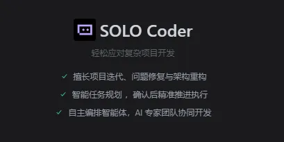 我们可以通过自然语言提出需求,AI即可自动完成从需求理解、任务分解、代码编写、测试到部署的完整开发流程。它定位为“响应式编码智能体”,内含SOLO Builder(快速搭建应用)和SOLO Coder(处理复杂迭代)两大智能体,并支持多任务并行与代码变更追踪。该模式目前国内免费使用。