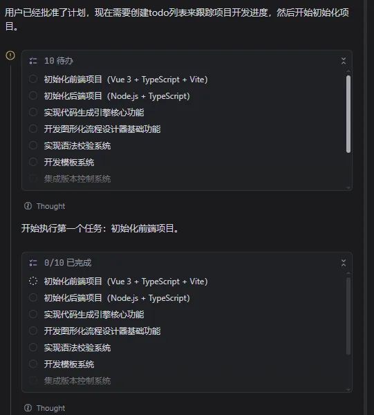 # PLC代码自动生成应用程序实施计划## 1. 项目初始化与基础架构搭建### 1.1 前端项目初始化- 使用Vite创建Vue 3 + TypeScript项目- 配置基础依赖和开发环境- 搭建项目目录结构### 1.2 后端项目初始化- 创建Node.js + TypeScript项目- 配置核心依赖- 实现基础服务器架构### 1.3 核心模块设计- 设计代码生成引擎的核心接口- 规划插件系统架构- 定义数据模型和配置结构## 2. 核心功能开发### 2.1 代码生成引擎- 实现ST语言代码生成功能- 扩展支持LD和IL格式- 开发PLC品牌适配层### 2.2 图形化流程设计器- 实现基础的拖拽功能- 开发流程元素库- 实现流程图与代码的同步### 2.3 语法校验系统- 实现ST语言语法校验- 扩展支持其他语言格式- 开发错误提示功能## 3. 扩展功能开发### 3.1 模板系统- 实现基础模板管理功能- 开发内置模板库- 支持用户自定义模板### 3.2 版本控制系统- 集成Git操作- 实现代码历史管理- 开发分支管理功能### 3.3 导出功能- 支持多种文件格式导出- 实现PLC品牌专用格式- 开发项目打包功能### 3.4 插件系统- 实现插件加载机制- 开发插件API- 测试插件扩展功能## 4. 集成与测试### 4.1 前后端集成- 实现API接口对接- 开发数据同步机制- 测试端到端功能### 4.2 功能测试- 测试各PLC品牌代码生成- 验证语法校验功能- 测试模板和插件系统### 4.3 性能测试- 测试大规模流程图处理- 验证代码生成速度- 测试系统稳定性## 5. 文档与部署### 5.1 文档编写- 编写用户操作手册- 开发API文档- 创建示例项目库### 5.2 部署配置- 配置Docker容器- 实现Electron打包- 测试部署流程## 6. 优化与迭代### 6.1 性能优化- 优化代码生成算法- 提升前端渲染性能- 优化数据库查询### 6.2 用户体验优化- 改进界面设计- 增强交互体验- 完善错误提示### 6.3 功能扩展- 添加新的PLC品牌支持- 开发行业专用插件- 实现高级功能特性## 7. 交付与支持### 7.1 最终测试- 进行全面的功能测试- 验证系统稳定性- 测试边界情况### 7.2 交付准备- 打包发布版本- 准备部署文档- 整理技术支持资料### 7.3 技术支持- 建立用户反馈渠道- 提供在线技术支持- 规划后续版本迭代