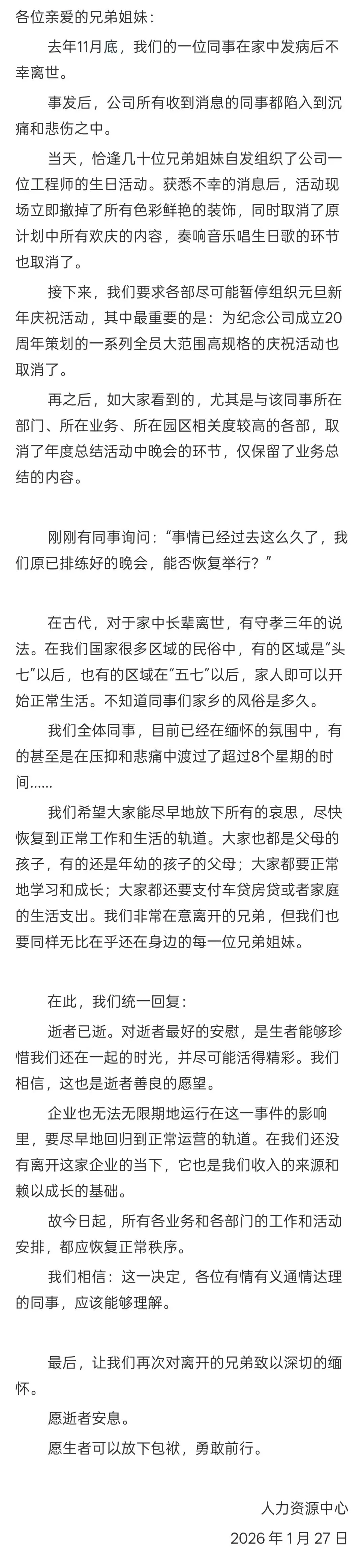 2、高广辉生前所在公司给出的事件回复