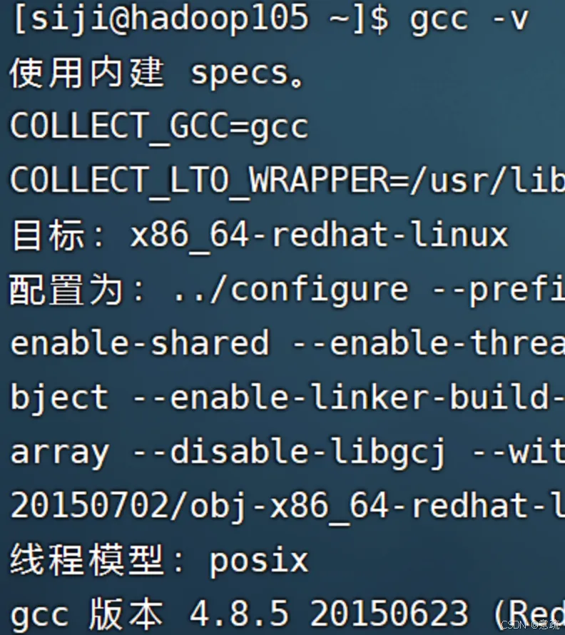 我们安装完成的话可以使用gcc -v来查看编译器版本。