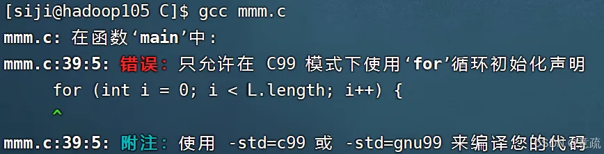 需要注意的:2024年八月29日的一点补充,如果在Linux编译时出现以下错误时,执行gcc -std=c99 -o h mmm.c。h后面的是你的程序名。